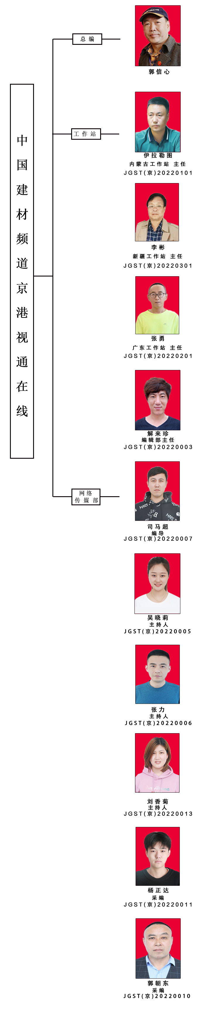 京港視通在線工作室位于中國建筑材料科學研究總院內,是京港視通傳媒(北京)有限公司的一個璀璨欄目,建材業動態、視頻(會議、展會)宣傳的展示平臺,內設有行業規范、行業新聞、名人訪談、名企之家等欄目。公司總監郭信心,著名編導、制片人,現任中國將帥文化論壇組委會副秘書長、自1985年從事影片制作工作,先后擔任《內心獨白》、《黑山路》、《綠色故事》《鳳凰簫》。《內心獨白》、《老大是咱媽》、《明天的日記》、《所有的事自己扛》、院線電影《韶華常春》、《守望》、《情之殤》。《希望的方向》、《楊柳村的姐妹們》、《探秘中國彩色寶石》《本草國學》等作品的導演、執行制片人工作,并策劃了農業部2009年廣西玉林《國際茶文化節》、中國國際青少年文化交流協會2010年《地質之光國際夏令營》、2012年全國人大批準的大型電影紀錄片《中華民族》、2013年中國少數民族文化教育專項基金《首屆全國少年兒童民族音樂舞蹈創新藝術節》、大型數字電影紀錄片《探秘中國彩色寶石》、大型數字電影紀錄片《本草國學》等作品。
